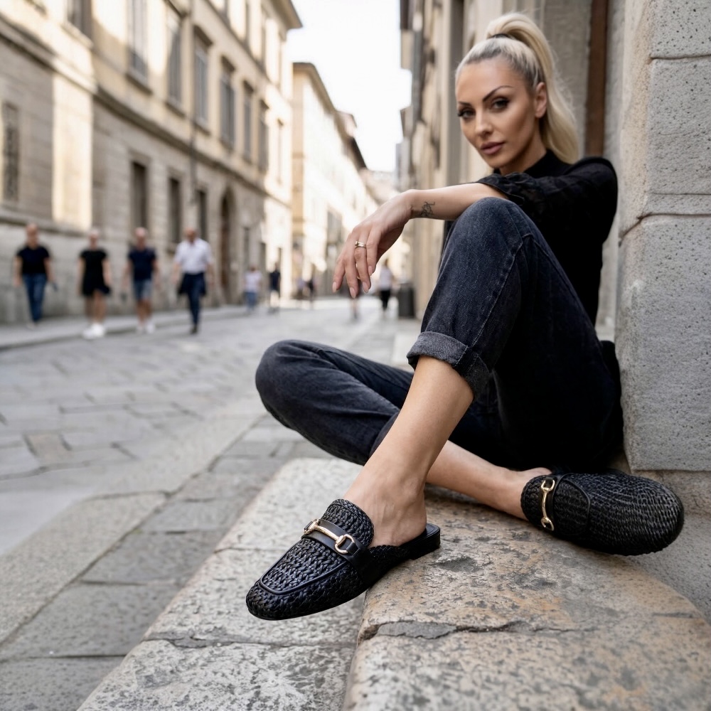 Αναβαθμίστε το καθημερινό σας στυλ με αυτό το κομψό γυναικείο παπούτσι τύπου mule, που συνδυάζει άνεση και σύγχρονη αισθητική. Κατασκευασμένο από υψηλής ποιότητας τεχνοδέρμα με ιδιαίτερη πλεκτή υφή, προσφέρει μοναδικό χαρακτήρα και ξεχωριστή εμφάνιση.